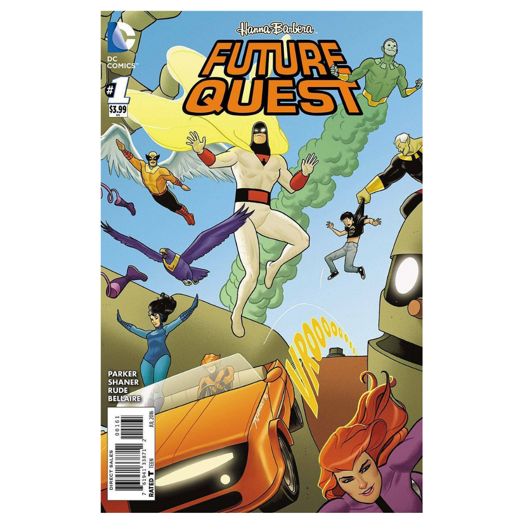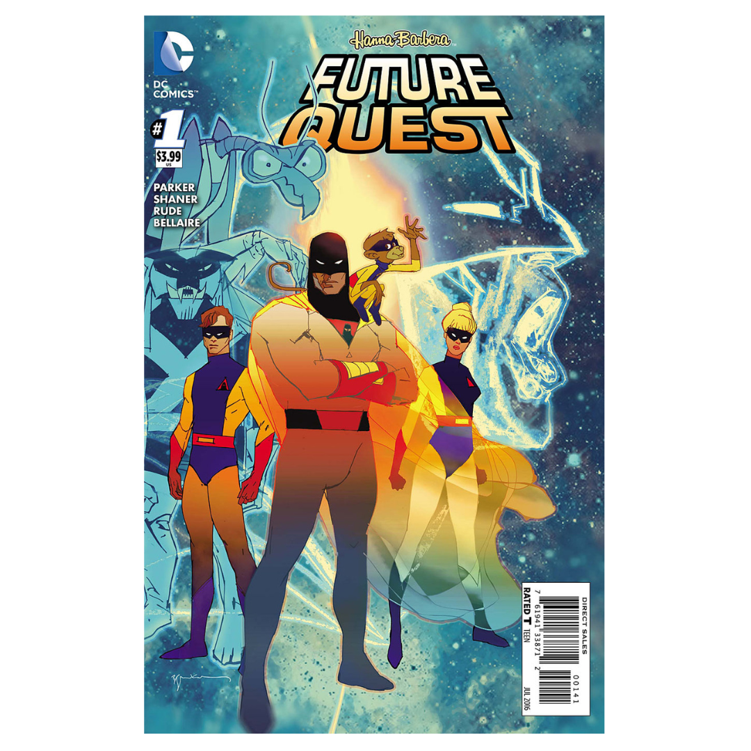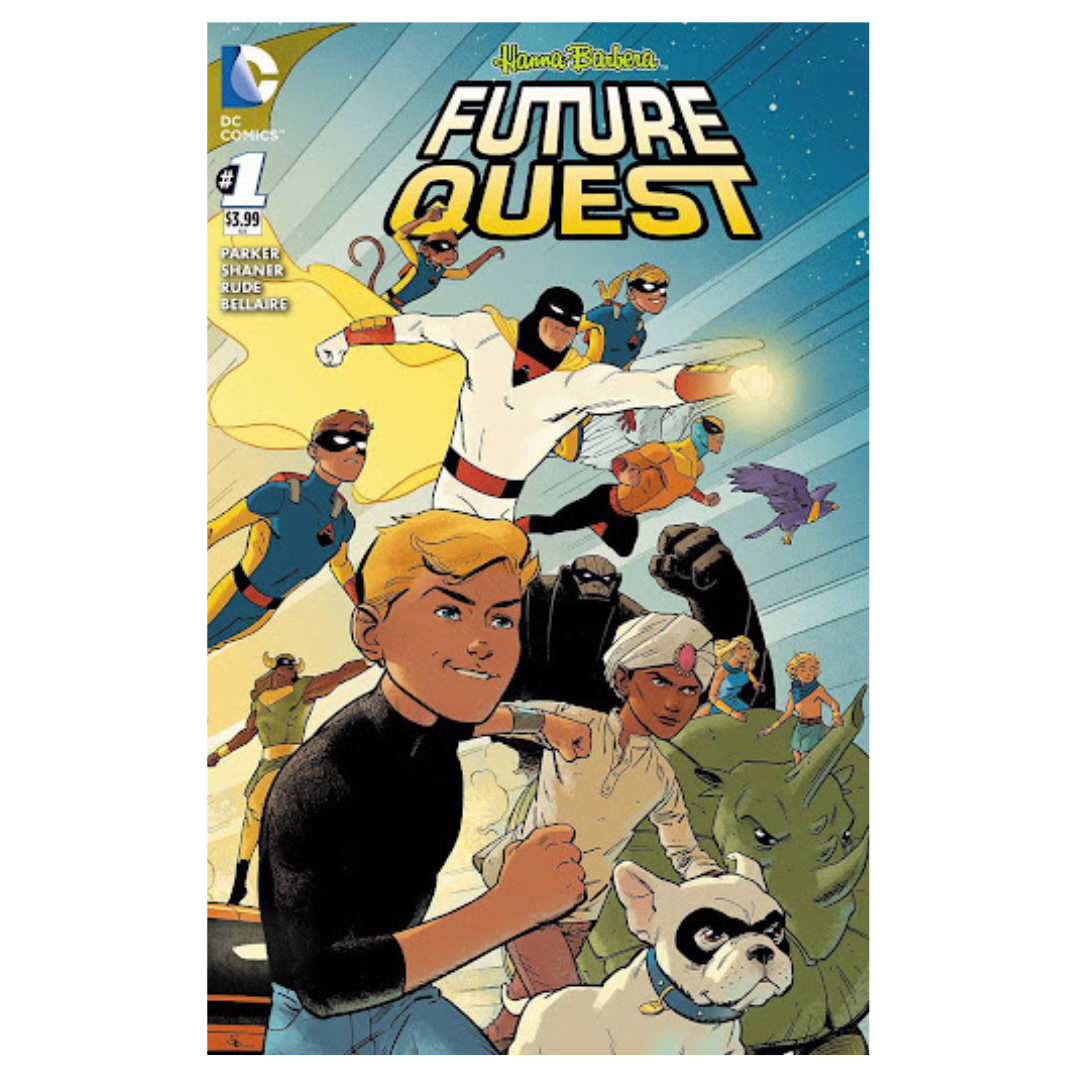 Future Quest #1. Written by Jeff Parker. Art by Evan "Doc" Shaner & Steve "The Dude" Rude.